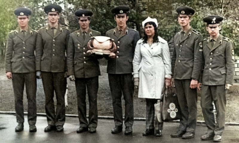 Слева направо: Мазурук В.А., Бажин В.В. (9-1976), лейтенант Кандыба С.А., Тимошенко В.Н. (11-1976), Корнейчук Нина, Помазан С.А. (1-1979), Ерошенко В.