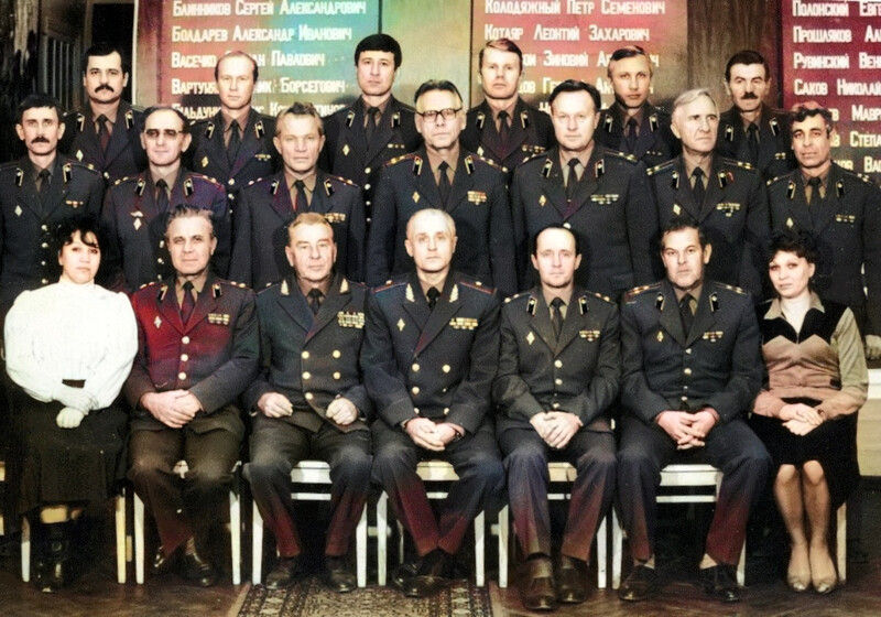 Слева направо: 1 ряд (сидят): Лисовая Н.Н., полковник Ткачев А.П., генерал-майоры Васильченко В.Н. и Сушков Ю.В., полковники Варнавин А.П., Боровлёв В.И. (2-1962), Филатова Е.П.;